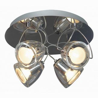 Бренд - Lussole (Италия), Серия - Civo, Выступ, мм - 160, Диаметр, мм - 250, Количество плафонов - 4, Возможность подключения диммера - можно, Общее кол-во ламп - 4, Лампы в комплекте - галогеновые GU10, Лампы - галогеновая, цоколь GU10; 220 В; 50 Вт, цвет: белый теплый, 2800 - 3200 K, Цвет плафонов и подвесок - неокрашенный, Цвет арматуры - хром, Тип поверхности плафонов и подвесок - прозрачный, Тип поверхности арматуры - глянцевый, Материал плафонов и подвесок - стекло, Материал арматуры - металл, Класс электробезопасности - I, Общая мощность, Вт - 200, Степень пылевлагозащиты, IP - 20, Стиль - модерн, техно, Тип лампы - галогеновая, Тип цоколя лампы - GU10, Напряжение питания лампы, В - 220, Максимальная мощность лампы, Вт - 50, Цветовая температура, K - 2800 - 3200 K, Тип колбы лампы - полусферическая с рефлектором, Форма плафонов - колокол, Направление плафонов - любое, Диапазон рабочих температур - комнатная температура, Размеры, мм - 250x160, Страна производителя - Италия, Дополнительные параметры - поворотный светильник, Гарантия, месяцы - 24 Работаем круглосуточно!Возврат 21 день. Страна производства: Италия Есть доставка.