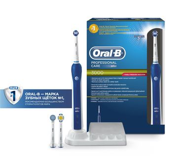Зубная щетка Oral-B Professional Care 3000 электрическая работает от аккумулятора и имеет три насадки, необходимые для различного рода чистки зубов: ежедневная чистка, полировка и бережный уход. Щетка оснащена датчиком силы нажима и двухминутным таймером сигнализирующем об окончании чистки зубов. Наличные, Visa/MasterCard, Яндекс.Деньги, WebMoney Возможен самовывоз. Есть доставка.