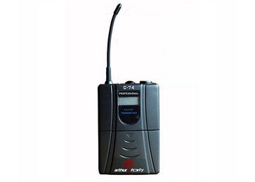 Arthur Forty C-74 Tour GuideОписание: Arthur Forty C-74 Tour GuideПередатчик C-74 Arthur Forty PSC (UHF) (Tour Guide). Поясной передатчик для системы тур-гид 32 канала с головной гарнитурой (mini XLR). Несущая частота: 630-865 MHzЧувствительность: -94 dBm for 30dB SINADT.H.D.: 95 dBЧастотный диапазон: 800Hz-18kHz, +/- 3dBВес передатчика: 100 грамм (без батареек)Время работы: > 8 часовLCD дисплей с подсветкой None