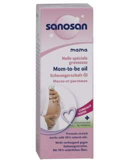 Масло массажное от растяжек 100 мл Саносан Sanosan содержит витамин А, подсолнечное и миндальное масло, масло жожоба. Регулярное использование предотвращает возникновение растяжек. Рекомендуется ежедневное использование с первых месяцев беременности. Без красителей. Минимальная сумма заказа 1500 руб. Возможен самовывоз. Есть доставка.