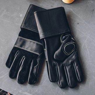 Полностью кожаная velcro-манжета для защиты от искр, порезов и механических повреждений;