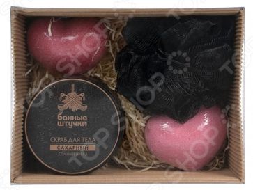Набор для ванны Банные штучки Страсть станет замечательным сюрпризом. Представленный набор состоит из двух бурлящих шаров с ароматом розы и жасмина, а также скраба для тела и оригинальной черной мочалки-банта. Особенности и преимущества Шары выполнены в оригинальной форме, в виде сердца. Скраб для тела сахарный подойдет для любого типа кожи. Мочалка-бант черного цвета, приятна в использовании и очень практична. Почему Банные штучки В каждой группе товаров Банные штучки есть все, что нужно для бани, и даже больше. Потому что мы любим баню, мы понимаем, что душевная баня складывается из важных мелочей: качественных материалов бондарных изделий, удобных размеров мебели, приятных на ощупь тканей, 100 натуральных эфирных масел без добавок, выбора веников на любой вкус, и, конечно, красивой, выделяющейся на полке упаковки. Не секрет, что часто товары для бани покупают в подарок! В Банных Штучках всегда найдутся креативные подарочные наборы, которыми можно удивить даже самых заядлых парильщиков. None Возможен самовывоз. Есть доставка.