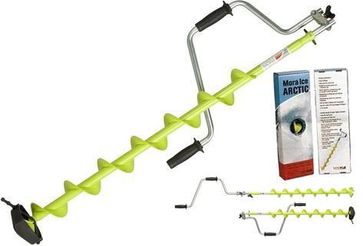 Новинка от производителя Mora: Ледобур Ice Arctic 110мм, арт.20521. Данная комплектация ледобура от известного бренда Mora имеет ряд существенных отличий. Благодаря значительному увеличению длины шнека она подходит для использования в суровых зимних условиях на водоемах со значительной толщиной льда. Так, при наличии в комплекте специального удлинителя возможно бурение льда с толщиной порядка двух метров.