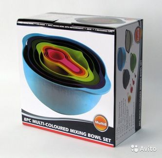 Набор мисок "Гнездо 8" – это практичность, экономия пространства, яркие краски и стиль! Благодаря тому, что все миски помещаются друг в друга, они очень компактны и удобны в хранении. Изготовлены из специального антибактерицидного пластика, безопасного для здоровья. Легко моются в посудомоечной машине. В любом доме будут рады такому подарку, и никто не останется равнодушным к этому практичному и жизнерадостному аксессуару. В комплекте: 1/4 стакана – 60 мл 1/3 стакана – 80 мл 1/2 стакана – 125 мл 1 стакан – 250 мл Малая миска с мерными делениями – 0,5 л Сито – 1,65 л Дуршлаг – 3 л Большая миска с нескользящим дном – 4,5 л Можно мыть в посудомоечной машине. Размер упаковки: 282814 см. satom Страна производства: Китай Возможен самовывоз. Есть доставка.