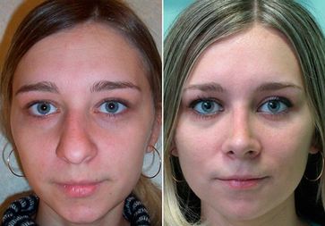 Приподнимает кончик носа, который опускается в связи с возрастными изменениями Сужает кончик и крылья носа Уменьшает длину носа (за счет приподнятия кончика) Сглаживает острые уголки и горбинку на переносице Восстанавливает симметрию