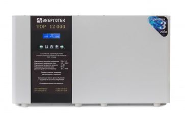 - Стабилизатор Энерготех TOP 12000 по выгодной цене 66 300 р. руб.;