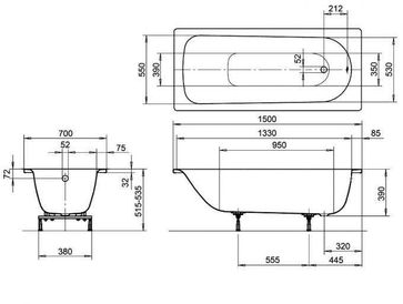 - Ванна стальная Kaldewei EUROWA 150х70 2,5мм по выгодной цене 7 400 р. руб.;
