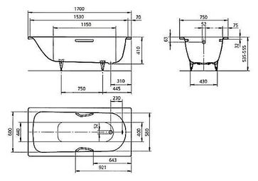 Высота, см: 53,5 Гарантия: 30 лет Длина, см: 170 Ширина, см: 75 Глубина, см: 41 Ножки: приобретаются отдельно Ручки: приобретаются отдельно Слив-перелив: приобретается отдельно Толщина ванны, мм: 3,5 Антискользящее покрытие: Нет Подголовник: приобретается отдельно None Страна производства: Германия