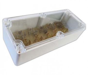 БРП5 Блок реле и предохранителей предназначен для монтажа различных схем низковольтного электрооборудования.. Представляет собой установленную в герметичный корпус печатную плату с контактами (гнезда 6,3 мм и штыри 6,3 мм).Гнездовые контакты объединены в группы, позволяющие установить в них плоские предохранители и устройства в корпусах "мини" реле, и электрически соединены с соответствующими штыревыми контактами.. Коммутация схем осуществляется соединительными проводами с гнездами 6,3 мм (для фиксации на штыревых контактах платы). . Провода с гнездами в комплект поставки не входят. Для удобства монтажа рекомендуется использовать провода разного цвета.. Характеристики:. Количество мест под предохранители: 5. Количество мест под реле: 5. Рекомендации по монтажу:. 1. Снять крышку, вывернув крепежные винты.. 2. Извлечь из корпуса печатную плату.. 3. Собрать на плате схему, установив в соответсвующие гнезда предохранители и используемые устройства (например, реле).. 4. Осуществить коммутацию с помощью предварительно подготовленных проводов с гнездами.. 5. В корпусе блока просверлить отверстие необходимого диаметра под присоединительные провода или гермоввод.. 6. Закрепить плату в корпусе, провода пропустить через отверстие (или гермоввод).. 7. Установить на корпус крышку и закрепить ее винтами. None