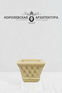 Небольшой садовый вазон с узором под плетение из высокопрочного архитектурного бетона. Этот материал предназначен для уличного использования, не боится жары и перепадов температуры. Вазоны не нужно закреплять для усиления устойчивости, так как они прочные и тяжёлые. Возможно исполнение в различных цветах — белый, золотой, бронзовый. Прокраска в массе. Имеется дренажное отверстие для вывода влаги.