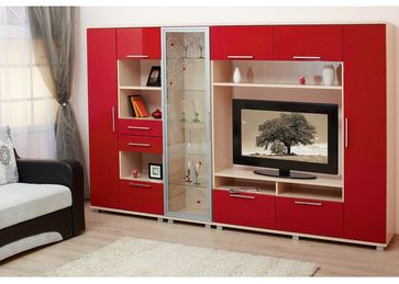 Артикул - SLV_HM_027-01_027-02_027-03_krasnii,Бренд - Сильва (Россия),Серия - Калипсо,Ширина, мм - 2900,Глубина, мм - 460,Высота, мм - 1850,Цвет фасада - красный, неокрашенный,Тип поверхности фасада - глянцевый, прозрачный,Материал фасада - МДФ, стекло,Цвет корпуса - дуб молочный,Тип поверхности корпуса - глянцевый,Материал корпуса - ЛДСП,Угол - прямая,Размеры элементов гарнитура - шкаф комбинированныйширина, мм: 850глубина, мм: 460высота, мм: 1850шкаф комбинированныйширина, мм: 1550глубина, мм: 460высота, мм: 1850ниша под ТВширина, мм: 1170высота, мм: 790шкаф-витринаширина, мм: 500глубина, мм: 460высота, мм: 1850,Дополнительная информация по элементам - выдвижной ящик (5 шт.) None Страна производства: Россия Есть доставка. Доставка: 590.0RUR