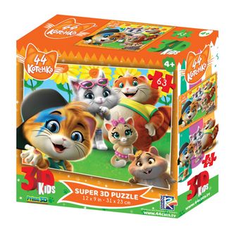 Линзовидные (лентикулярные) пазлы с эффектом трехмерного объемного изображения. 63 фрагмента. Размер собранного пазла: 31?23 см. Лицензия: 44 котенка.