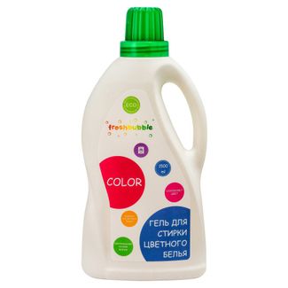 Абсолютно натуральный гель для стирки цветного белья Freshbubble. В основе нашего геля растительный ПАВ из кокоса и глюкозы плюс комплекс энзимов. Энзимы прекрасно справляются с пятнами и загрязнениями, плюс сохраняют цвет. Наши экологичные средства для дома созданы из безопасных ингредиентов, с заботой о настоящем и мыслями о будущем. Используя наши продукты для уборки в доме, Вы вносите свой вклад в сохранение нашей планеты здоровой и чистой для будущих поколений. Вода - это самый главный ресурс на планете, сохраним её чистой для наших детей. Применение: Колпачок геля выполняет функцию мерного стаканчика. Один колпачок = 60 мл.Рекомендации по применению в стиральной машине:При легких загрязнениях - 40 мл.При нормальных загрязнениях - 60 мл.Сильные загрязнения - 90 мл.При максимальной загрузке стиральной машины: +40 мл.Ручная стирка: 60 мл. на 10 литров воды.Температура стирки от 30 до 90 градусов, в зависимости от загрязнения.Хранить при температуре от +5° до +25°С. Создано с любовью к людям и природе. При производстве мы используем энергосберегающие технологии без нагрева. Меры предосторожности: хранить в защищенном от детей месте. При попадании в глаза сразу промойте водой. При проглатывании обратитесь к врачу и покажите упаковку. Объем: 1500 мл. Срок годности: 2 года. Состав: Aqua (Вода), Sodium Coco-Sulfate (ПАВ на основе кокосового масла), Sodium citrate (Цитрат натрия), Coco-glucoside (Мягкий ПАВ из кокосового масла), Hydrogenated starch hydrolysate (Растительный сорбитол), Sodium Chloride (Соль морская), Xanthan Gum (Ксантановая камедь), Enzymes (Смесь растительных энзимов: протеазы, амилазы, пектиназы, липазы, маннаназы и целлюлазы), Vinylpyrrilidone/Vinylimidazole copolymer (ингибитор переноса цвета), Citrus Sinensis oil (Эфирное масло апельсина), Sodium Benzoate (Бензоат натрия), Potassium sorbate (Сорбат калия), Citric acid (Лимонная кислота).Внимание! Фактический цвет изделия может незначительно отличаться от цвета на фотографии в связи с особенностям