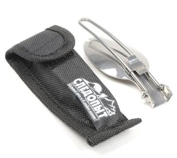 Складная ложка из нержавеющей стали для использования на пикнике, в походе. Легко собираются в компактный размер, для хранения предусмотрен чехол на липучке. Чтобы ложка не сложилась в процессе использования имеется дополнительный фиксатор.