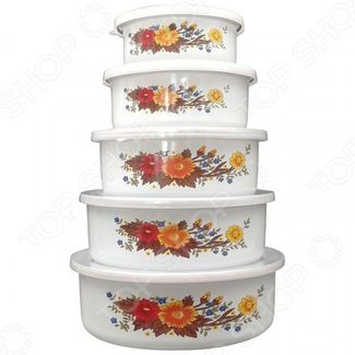 Купить набор мисок Mallony с крышками значит приобрести 10 практичных предметов для сервировки, хранения и транспортировки различных продуктов. Набор включает в себя 5 эмалированных мисок и 5 пластиковых крышек различного объема и размера. Предметы набора в лаконичном дизайне подойдут к любому интерьеру кухни. Практичный набор мисок разных размеров Изделия имеют круглую форму, их размер от 10 до 18 см, а высота стенок от 4,25 до 6,35 см. В зависимости от размера миски имеют различный объем: 195 мл; 340 мл; 600 мл; 850 мл и 1250 мл, что делает их удобными в использовании. Все предметы набора выполнены в едином лаконичном стиле милый цветочный рисунок на белом фоне. Качественные материалы Миски изготовлены из прочной углеродистой стали и покрыты двойным слоем эмали. Ободок выполнен из нержавеющей стали, что защищает его и само изделие от случайных повреждений при использовании металлических кухонных аксессуаров. Крышки для мисок изготовлены из полипропилена. Компактное хранение При необходимости набор очень удобно хранить даже на маленькой кухне. Просто сложите все предметы набора один в другой, по типу матрешки. Преимущества: Набор мисок различных размеров, покрытых эмалью. Крышки в комплекте. Качественные материалы. Милый рисунок и лаконичный дизайн. Компактное хранение. None Возможен самовывоз. Есть доставка.