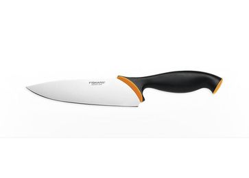 **Поварской нож (857111) ** Серия ножей Fiskars Functional Form является самой популярной коллекцией ножей Fiskars. Ножи Functional Form предназначены для повседневного использования на кухне. Но при этом разработчики сделали особый акцент на эргономичности, функциональных возможностях и безопасности. Лезвия выполнены из высококачественной японской стали твердостью 53 ед. по шкале С. Роквелла. Рукояти ножей имеют нескользящее покрытие Softouch. Эргономичная рукоять отлита под давлением прямо с лезвием, что гарантирует прочное и гигееничное соединение. Ножи можно мыть в посудомоечной машине. Дизайн Тобиаса Вандрупа и Эрика Торо Лауридсена получил приз за лучший дизайн Red Dot 2006. Лезвия легко точить с помощью роликовой точилки Fiskars или муссата. Традиционный кухонный нож с высоким лезвием для шинкования овощей и нарезания мяса. Лезвия выполнено из высококачественной японской стали твердостью 53 ед. по шкале С. Роквелла. Рукоять ножа имеет нескользящее покрытие Softouch и специальный упор для пальца, предотвращающий соскальзование руки. Нож можно мыть в посудомоечной машине. Лезвия легко точить с помощью роликовой точилки Fiskars или муссата. Вес — 89 гр. Длина — лезвия 160 мм.