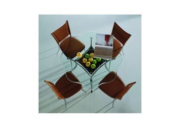 Высота: 77 см. Диаметр 100 см. Цвет ножек: хром Столешница: прозрачная Подстолье: коричневое Форма столешницы: тюльпан None