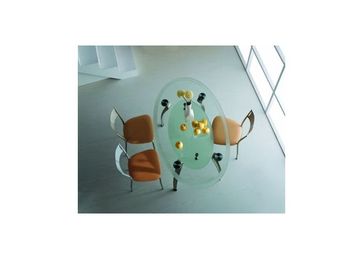 Высота: 76 см Ширина, глубина: 150 x 90 см Цвет ножек: матовый Столешница - прозрачна, полка - матовая Форма столешницы - овальная, полка - овальная None