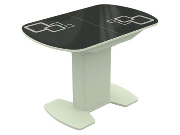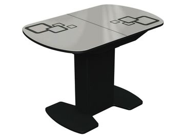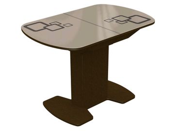 Характеристики: <br> Материал столешницы: МДФ 18 мм, закаленное стекло 4 мм.<br> Материал вставки и подстолья: ЛДСП 18 мм.<br> Материал колонны: МДФ 16 мм с пленкой ПВХ.<br> Материал основания: МДФ 22 мм с пленкой ПВХ.<br> Скругленные углы столешницы.<br> Механизм трансформации: синхронно-раздвижной со вставкой «бабочка» со стеклом.<br> Ширина вставки: 320 мм.<br> Ширина в сложенном виде: 1100 мм.<br> Ширина в разложенном виде: 1420 мм.<br> Глубина столешницы: 700 мм.<br>