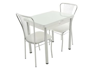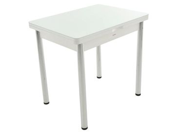 Кухонный стол Бари мини станет практичным дополнением обеденной зоны в квартире-студии и других небольших помещениях. В разложенном виде модель легко разместит до шести человек. Закаленное стекло, защищающее поверхность столешницы, обладает рядом преимуществ: оно устойчиво к перепадам температуры, не боится влаги, а также легко очищается от загрязнений.<br> Характеристики: <br> Материал столешницы: ЛДСП 18 мм, закаленное стекло 4 мм.<br> Материал подстолья и вставки: ЛДСП 18 и 22 мм.<br> Материал ножек: хром.<br> Материал подпятников: пластик.<br> Размер стола в разложенном виде (ВхШхГ): 750 х 1200 х 800 мм.<br> None Страна производства: Россия
