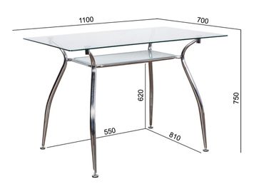 Характеристики: <br> Материал большой столешницы: закаленное стекло 8 мм.<br> Материал малой столешницы: закаленное матовое стекло 5 мм.<br> Материал ножек: хромированный металл.<br> Регулируемые подпятники.<br> None Страна производства: Китай