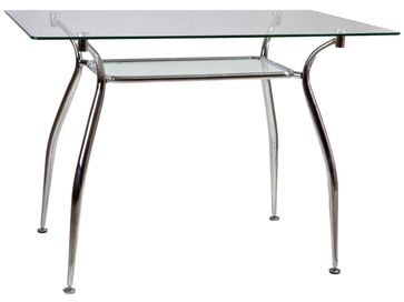 Кухонный стол Патриция создаст стильную и функциональную обеденную зону. Сочетание прозрачного стекла и хромированного металла визуально расширит пространство, сделает комнату более светлой. Столешница устойчива к влаге, легко и быстро моется.<br>