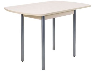 Кухонный стол Микс — идеальное решение для меблировки небольшого помещения. В сложенном состоянии модель занимает совсем немного места, а при необходимости столешница легко увеличивается вдвое, обеспечивая дополнительные места для посадки и сервировки. Благодаря универсальному дизайну столик отлично подходит для интерьера в любом стиле.<br>
