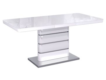 Характеристики: <br> Материал столешницы: МДФ, закаленное стекло.<br> Материал подстолья и опоры: МДФ.<br> Габариты малого стола в разложенном виде(ВхШхГ): 760 х 1600 х 800 мм.<br> Габариты большого стола в разложенном виде (ВхШхГ): 760 х 1800 х 800 мм.<br> Ширина вставки: 400 мм.<br>