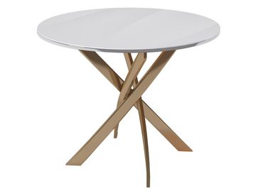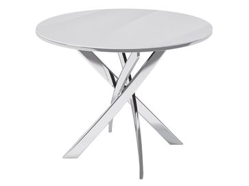 Кухонный стол Канди с круглой стеклянной столешницей станет центральным элементом современного интерьера обеденной зоны. Оригинально переплетенные между собой опоры гарантируют устойчивость конструкции и дарят обстановке особый шарм.<br>