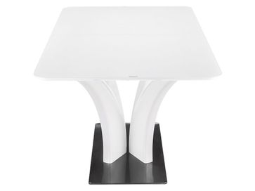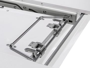 Кухонный стол Хорнс 120 — элегантная модель, с помощью которой легко обустроить комфортное пространство в современном стиле. Идеально гладкая поверхность легко очищается от загрязнений, не царапается и не боится влаги. При необходимости стол легко раскладывается, позволяя с комфортом расположить большую компанию, а скругленные углы обеспечивают безопасность и защищают от случайных травм.<br>