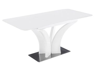 Характеристики: <br> Материал столешницы: МДФ, стекло.<br> Материал подстолья: МДФ.<br> Материал каркаса: МДФ, металл.<br> Размер в разложенном виде (ВхШхГ): 760 х 1600 х 800 мм.<br>