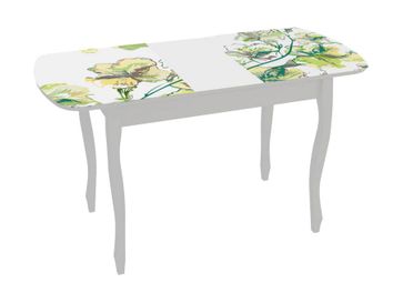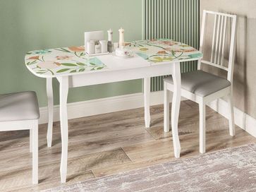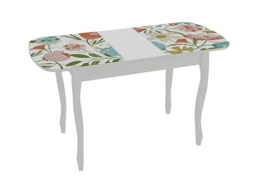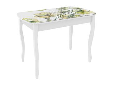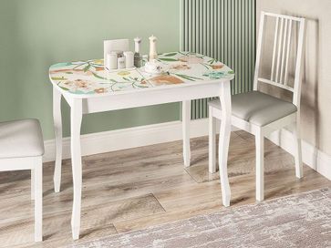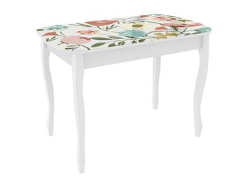 Кухонный стол Экстра 2 с оригинально изогнутыми опорами поможет организовать практичную, комфортабельную и стильную обеденную зону. Стеклянная столешница с очаровательным принтом привнесет в обстановку особое настроение. Для защиты напольного покрытия на ножках предусмотрены войлочные подкладки.<br>