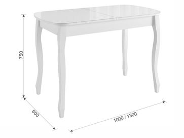 Характеристики: <br> Материал столешницы: ЛДСП 16 мм, стекло 4 мм.<br> Материал подстолья: ЛДСП.<br> Материал ножек: массив березы.<br> Размер в разложенном виде (ВхШхГ): 750 х 1300 х 600 мм.<br>