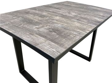 Необычный каркас кухонного стола Саен 10 произведен из металлической трубы и обработан износостойкой порошковой краской. Деревянная столешница дополнительно покрыта безопасным HPL-пластиком, материал устойчив к высокой влажности, перепадам температуры и механическим повреждениям.<br>