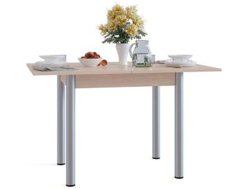 Раскладной обеденный стол с компактными размерами идеально пойдет для маленькой кухни. В сложенном виде размеры столешницы составляют всего 800х600 мм. Лаконичный стиль исполнения делает модель универсальной для любого интерьера.<br> Столешница и подстолье изготавливаются из ЛДСП толщиной 16 мм. Края столешницы обработаны кромкой ПВХ 2 мм, остальные детали — ПВХ 0,4 мм. Ножки — металлические. Высота от пола до края подстолья — 620 мм.<br>