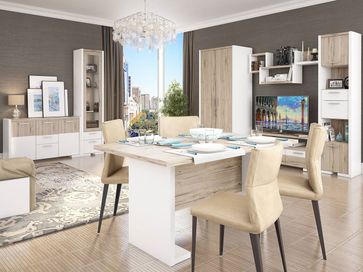 Оксфорд — стильный обеденный стол из коллекции мебели для гостиной «Оксфорд». Модель станет отличным решением для оформления кухни, столовой или обеденной зоны гостиной комнаты.<br> Для изготовления корпуса и столешницы использована КДСП. Все видимые и невидимые части модели покрыты меламиновой и ПВХ кромкой, благодаря чему стол отличается стойкостью к механическому воздействию и прочностью.<br> Сочетание белоснежного каркаса и столешницы в цвете натурального светлого дерева, делает Оксфорд С элегантным и очаровательным. None Страна производства: Россия