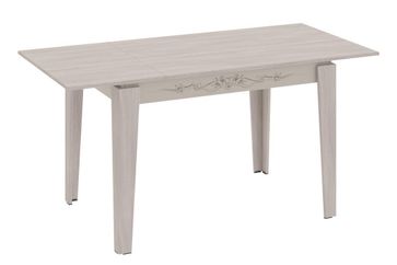 Обеденный стол Лацио станет изящным дополнением современного интерьера кухни, столовой или гостиной комнаты. Изделие способно сделать помещение практичным и привлекательным.<br> Преимущества: <br> раскладная столешница — ширину стола можно легко и быстро увеличить до 1550 мм;<br> очаровательный декор — подстолье модели украшено растительным рисунком, что создает привлекательный образ;<br> угловые опоры — обеспечат высокий уровень устойчивости конструкции.<br><br> Для изготовления столешницы и опор изделия используется ЛДСП.<br> None Страна производства: Россия