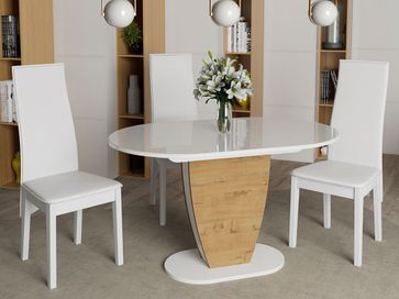 Преимущества: <br> стеклянная столешница — закаленное стекло не боится перепадов температуры, а также обеспечивает легкое удаление загрязнений;<br> овальная столешница — края столешницы аккуратно обработаны и не имеют острых выступов;<br> раздвижной — можно увеличить обеденную зону на 315 мм.<br> <br>
