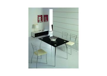 Высота: 75 см Ширина, глубина: 110 х 75 см Цвет ножек - хром Столешница – прозрачная, черная, черная с блестками, белая, зеленая, коричневая Форма столешницы - прямоугольная None