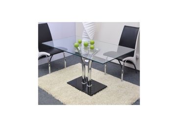Высота: 73 см.Ширина, глубина : 140 х 80 см.Цвет ножек - хромовыеСтолешница - прозрачнаяФорма столешницы - прямоугольная None