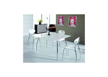 Высота: 75 см Ширина, глубина: 110/120 х 60/110 см Цвет ножек – хром Столешница – белый глянец Форма столешницы – прямоугольная None