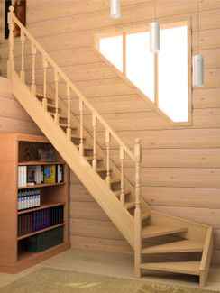 Лестница для дачи тяжелая маршевая поворотная 90°, правозаходная или левозаходная. Комплектуется перилами, резными балясинами и резными столбами. Для уменьшения занимаемой площади в интерьере, применяются забежные ступени. Лестница изготовлена из хвойных пород дерева, легко подвергается дополнительной обработке (нанесению лака, краски, декоративных рисунков). Высота подъема -3200 мм Высота подьема ступени -200 мм Ширина ступени -210 мм Количество ступеней -15 шт Максимальная нагрузка -200 ...