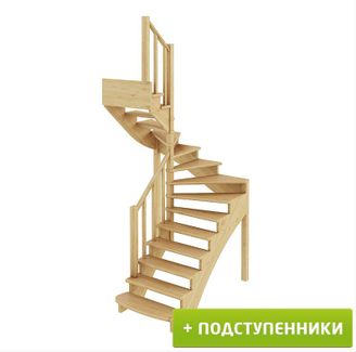 Лестница К-003М 3 Л 15 ступеней (h=3,12 м) с подступенками, сосна