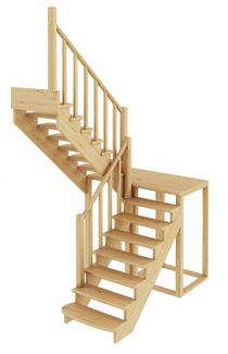 Лестница К-004М/1 Л 15 ступеней (h=3,12 м), сосна - функциональная модель, сконструированная по принципу: марш-промежуточная площадка-марш. Благодаря своей конструкции лестница отличается повышенной комфортностью и удобством эксплуатации. Традиционный дизайн эстетично впишется в интерьер дома и будет его достойным украшением. Лестница имеет поворот на 90? и выпускается в 4 различных вариантах, что значительно упрощает ее подбор.