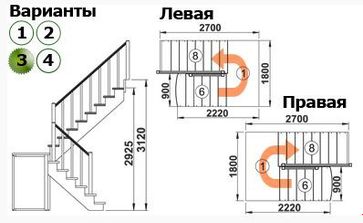 Лестница К-004М/3 Л 15 ступеней (h=3,12 м), сосна - функциональная модель, сконструированная по принципу: марш-промежуточная площадка-марш. Благодаря своей конструкции лестница отличается повышенной комфортностью и удобством эксплуатации. Традиционный дизайн эстетично впишется в интерьер дома и будет его достойным украшением. Лестница имеет поворот на 90? и выпускается в 4 различных вариантах, что значительно упрощает ее подбор.