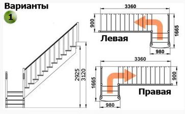 Лестница К-022М П 15 ступеней (h=3,12 м) с подступенками, сосна
