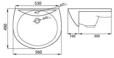Умывальник Оптима с переливом с отв. ЛЗСФ