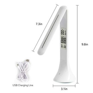 Описание Настольная светодиодная лампа с регулируемой яркостью и календарём Led Calendar Table Lamp, белый Эта лампа порадует вас не только своим эксклюзивным дизайном, но и сенсорным управлением. На жидкокристалическом дисплее отображаются дата, время, температура. Также вы можете завести будильник. Освещение не будет раздражать глаза, поскольку оно обеспечивается 12 безопасными для глаз светодиодами.</s