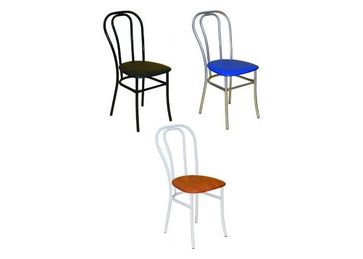 Стул на металлокаркасе с мягким сиденьем. Сиденье покрыто кожзамом либо тканью.