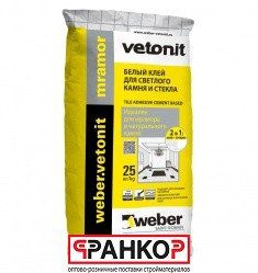 - Клей усиленный для мрамора Weber.Vetonit Mramor (Белый), 25 кг (48 шт. под.) по выгодной цене 1 080 р. руб.;